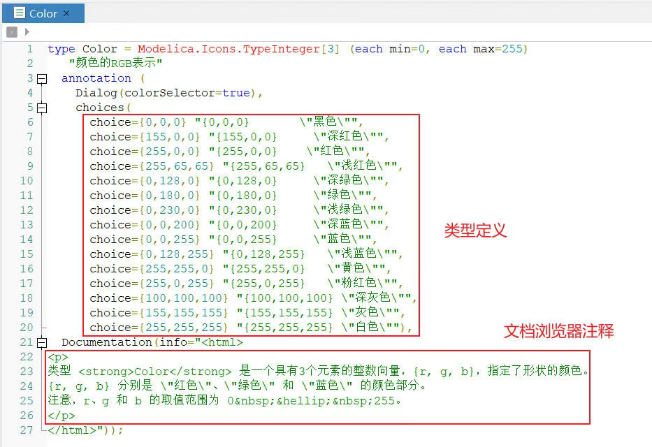 中文版合计翻译了17个子库中的1600 +的组件、元件、函数和类型定义等模型,完全覆盖了标准库的所有模型,具体翻译内容包括:模型描述、接口描述、参数注释、模型代码注释、文档浏览器内容等,如下图所示。尚未翻译的模型库包括:ModelicaReference、ModelicaServices、Complex等。