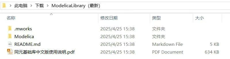解压下载获得的文件夹,即可获得同元基础库中文版的Modelica文件夹和使用说明文档。